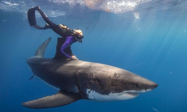 Imaginile care au făcut înconjurul lumii au fost realizate anul trecut, în Baja Mexico, relatează cotidianul britanic Daily Mail. Tânăra "taie" apa oceanului în timp ce se ţine de înotătorea dorsală a Marelui Alb. Fata e relaxată şi zâmbeşte cu încredere, de parcă ar fi antrenoarea unor delfini.