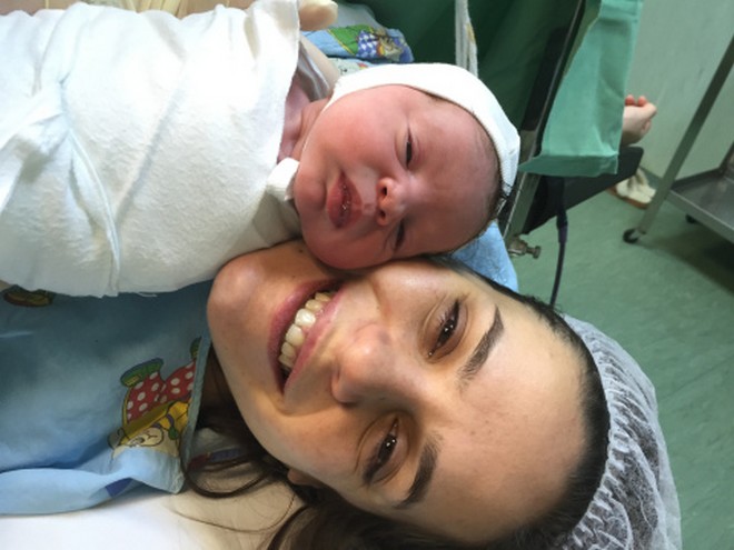 Nicoleta Cârjan şi Iris Anna, la puţin timp după ce ultima a venit pe lumeDar socoteala de acasă nu se potriveşte cu cea din târg, aşa că: ”Singură în salon am aplicat tot ce învățasem în lunile de pregătire: meditație hypnobirth, respirație Lamaze, poziții pe minge, pe pat, lângă pat, concentrarea într-un punct pentru ignorarea durerii. La 04.30 a venit iar moașa, mi-a făcut un control intern, concluzia: dilatație maxim 2, nu are sens să o trezesc pe doctorița de gardă, pe a ta de acasă nici atât, nu putem face nici epidurala că altfel nu mai naști natural. Mai stăm până la 6, sperăm să te dilați, dacă nu, facem epidurală și, asta este, cezariană, mult succes! E clar că durerea îmi luase mințile căci eu am fost de acord cu ea. Nu am cerut atunci epidurala și cezariana. Mă gândeam: ai zis că naști natural, moașa zice că durerile mele sunt normale, acum asta este voi suporta chiar dacă e mult mai intens decât mi-am imaginat. Până la 6:00 când a venit doctorița de gardă am crezut că o să mor, dar nu m-am lăsat. Deja contracțiile erau de o intensitate neconcepută, la maxim un minut distanță, în care efectiv adormeam de epuizare. Când a ajuns doctorița și a văzut în ce hal sunt a decis să mă ducă în salon de naștere să mă pună la oxigen. Tot îmi zicea că nu respir corect și că atâta lucru am și eu de făcut ca să nu sufere copilul. Dilatația mea rămăsese la 2, dar au chemat anestezista să-mi facă epidurală, iar când au văzut rezultatul TNS-ului (măsoară ritmul cardiac al copilul și intensitatea contracțillor) au chemat de urgență medicul meu și pe mama. M-au anunțat că cel mai probabil trebuie să facem cezariană. Eu eram deja încleștată, pierdusem calciu, și tremuram incontrolabil din cauza frisoanelor. Abia am reușit să țin pixul în mână să semnez formularele că sunt de acord”,