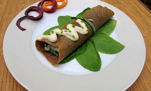 O delicioasă clătită ”raw” cu spanac, din bucătăria Fibrio