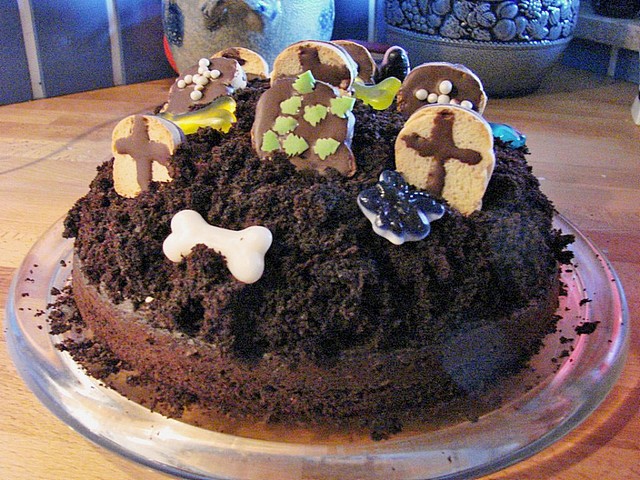 Un tort care arată ca un cimitir este perfect pentru sărbătoarea de Halloween. Invitaţii vor fi fascinaţi de decorul lui. Vezi AICI reţeta!