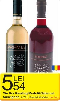 Vin Dry Riesling / Merlot&Cabernet Sauvignon Premiat Murfatlar - 5.54 lei / sticla 0.75l Carrefour Hipermarket