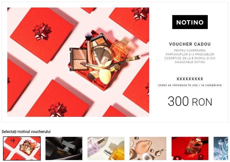 Atunci când nu știi ce să alegi, poți opta pentru opțiunea de voucher cadou, între 100 și 400 lei. Și ca să nu pară că ai făcut asta, doar pentru că nu ai avut timp să cauți ceva mai bun, Notino îți permite să personalizezi design-ul voucherului și chiar să-i lași un mesaj destinatarului. Îl poți trimite instant, pe mail, sau îl poți înmâna fizic. Persoana care îl primește are 12 luni la dispoziție pentru a-l revendica, fie online, fie într-unul din magazinele Notino.