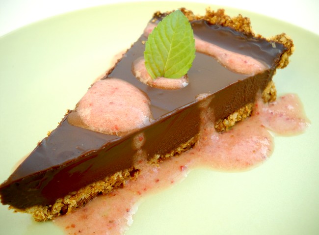 2. Tartă cu cremă de ciocolată şi blat din ovăz şi seminţe