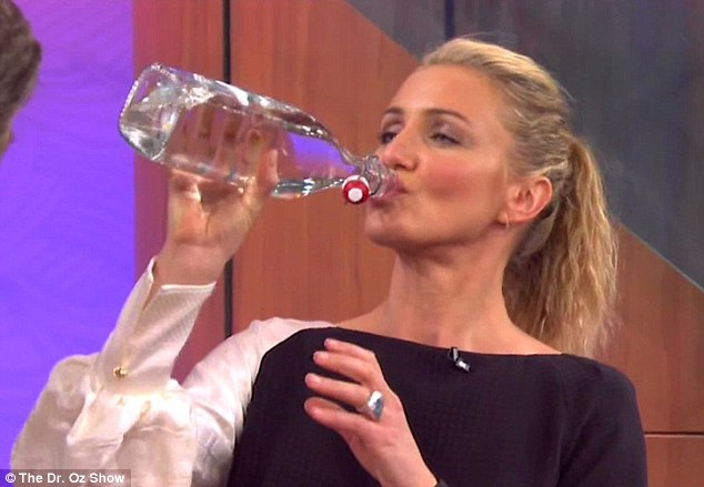 Cameron Diaz bea un litru de apă în timpul emisiunii "The Dr. Oz Show"