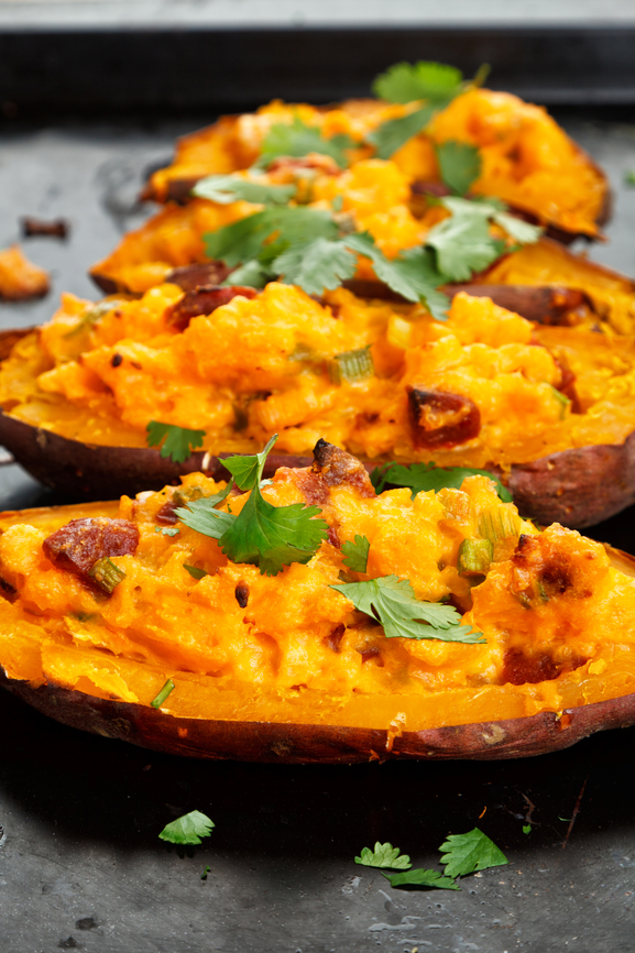 Cartofii dulci combinaţi cu legumele cu frunze verzi (cum ar fi spanacul) asigură o cantitate însemnată de potasiu care asigură un somn de calitate pe timpul nopţii, dar te ajută şi să te trezeşti plină de energie pentru a face faţă solicitărilor din timpul zilei.