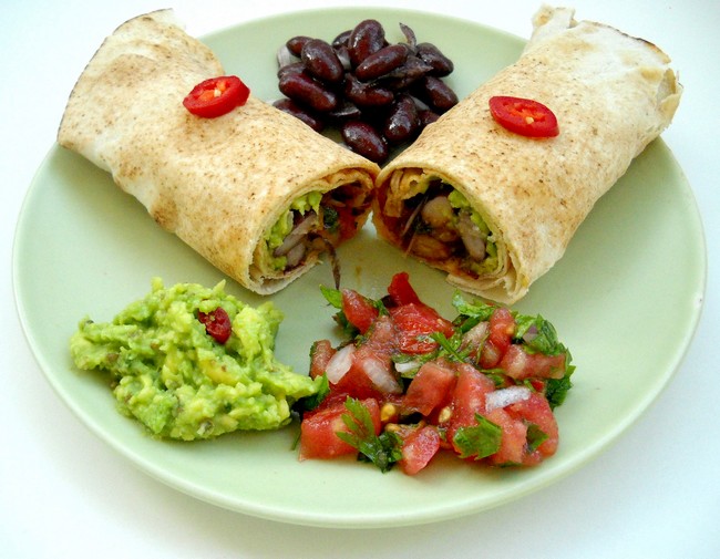 5. Burrito vegetarian cu fasole, salsa şi guacamole