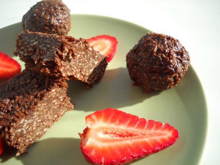 2. Batoane cu nucă de cocos, banană şi pudră de cacao