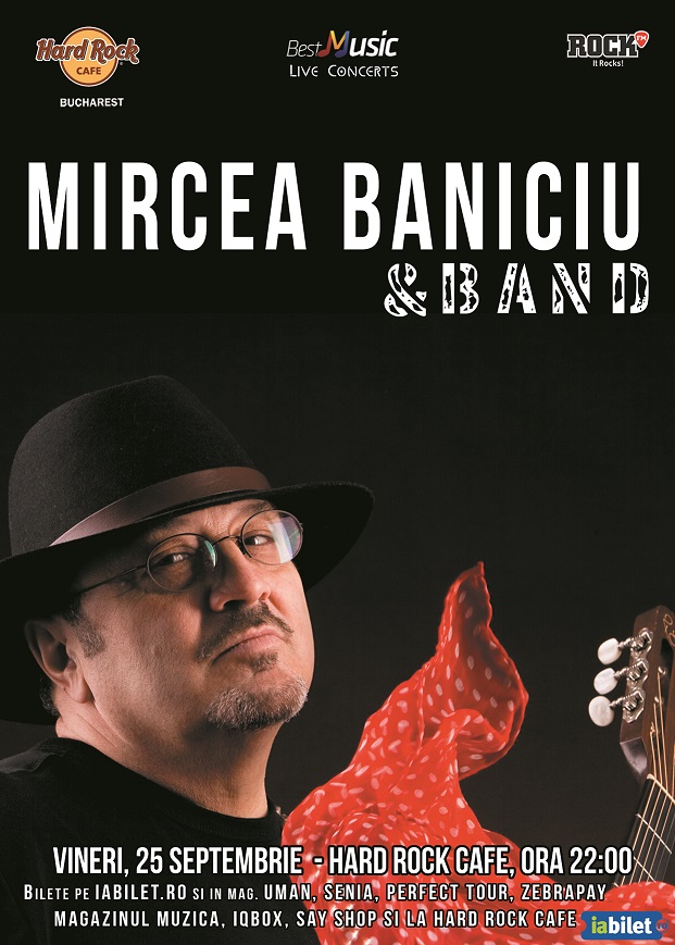 O voce legendară revine la Hard Rock Cafe! BestMusic Live Concerts te invită pe 25 septembrie la un concert select, în care vei regăsi refrene rock pline de atitudine, dar şi fermecătoare „tristeţi provinciale”, istorisite pe note muzicale de MIRCEA BANICIU and Band. Vino să cânţi „Pisica neagră”, „Vara la ţară”, „Eşarfa” şi multe alte melodii ale îndrăgitului artist!