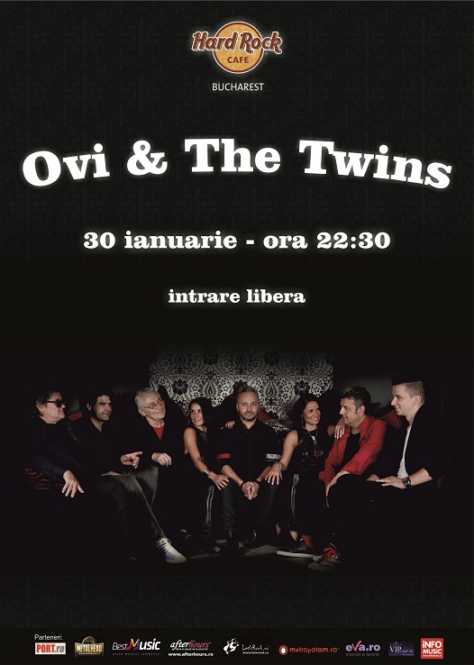 Pe 30 ianuarie vino la Hard Rock Cafe să te delectezi cu o apariţie electrizantă şi rafinată - Ovi and The Twins te aşteaptă la un show total! Vino să asculţi cele mai tari refrene din anii `70, hituri din perioada febrei disco şi melodii latino incendiare, interpretate live de Ovi and The Twins! Ia-ţi pantofii de dans şi bucură-te de o incursiune muzicală pe toate meridianele lumii!
