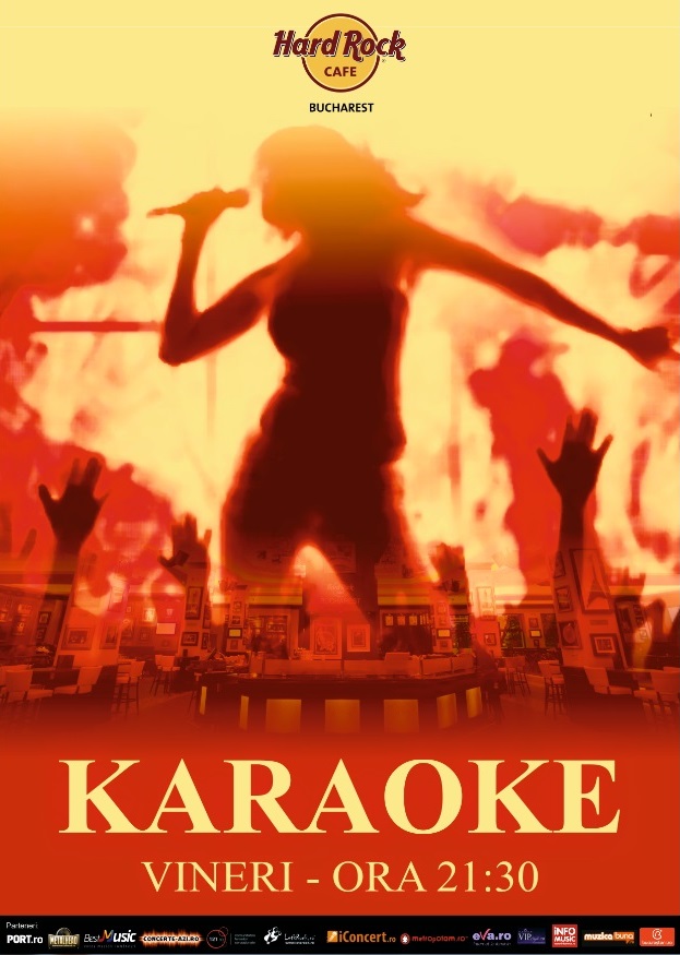 Vineri seara, Hard Rock Cafe iti da sansa de a te transforma din fan in superstar! Urca pe scena si arata-le prietenilor tai ca ai stofa de vedeta interpretand o piesa dintr-un impresionant repertoriu ce cuprinde trupe si artisti ca: The Beatles, AC/DC, Aerosmith, U2, Queen, Bon Jovi, Michael Jackson, Robbie Williams si multi altii. Vei pleca nu doar cu o multime de fani, ci si cu premii! Intrarea este libera. Rezervari la numarul 021 2066261.