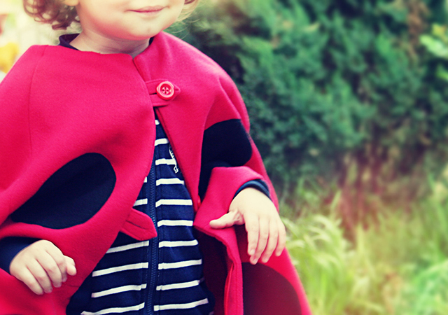 Capa buburuză pentru o garderobă veselă poate fi cumpărată de la Atelier. Multe alte hăinuțe adorabile, pentru copii poznași, de la Lilu Tesa și alți creatori te așteaptă la târg. Mai multe imagini aici.