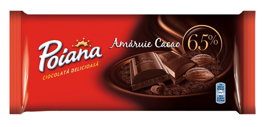 Piața de ciocolată amăruie a crescut cu peste 10% (în valoare)* în ultimul an față de cel precedent. În acest context, Poiana a creat o gamă specială de ciocolată amăruie, cu un conținut mai mare de cacao, pentru a oferi consumatorilor posibilitatea de a-și alege gustul preferat.