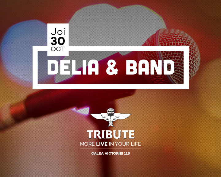 Joi, 30 octombrie, Delia Matache vine pentru prima oară în TRIBUTE cu un show fulminant: Delia & Band. O voce puternică, un talent grozav și mult șarm ar fi câteva atribute ale artistei cu care aceasta s-a distins în scena muzicală. Joi, Delia & Band promit publicului TRIBUTE un show de excepție și distracție fără limite.