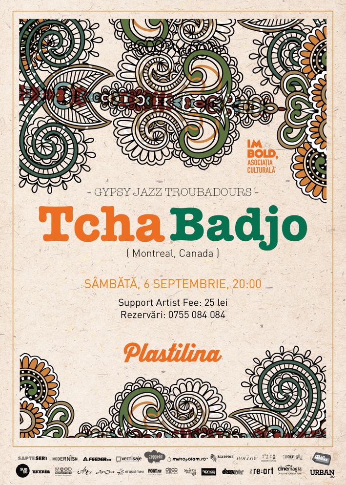 Asociaţia Culturală Imbold pregătește două seri speciale jazz manouche la Acuarela și Plastilina, cu trioul canadian TCHA-BADJO. Trubadurii gypsy jazz vor concerta, pentru a doua oară, la Acuarela vineri, la ora 20:00. Evenimentul de la Plastilina va avea loc sâmbătă, 6 septembrie, începând cu ora 20:00.