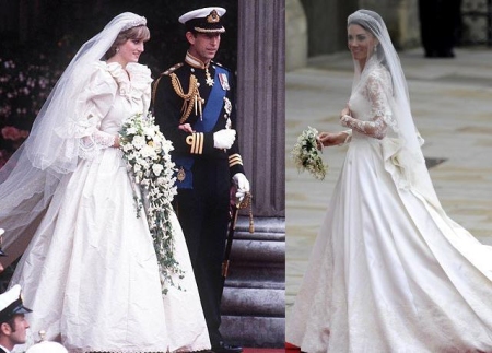 Comparată întotdeauna cu mama soţului ei, Lady Diana, şi considerată a fi urmaşa ei, Kate Middleton mireasa a fost, totuşi, totalmente diferită de Lady Diana mireasa. Dacă în anul 1981 Casa Regală Britanică a avut o mireasă strălucitoare, o rochie supradimensionată, un voal imens, acum am văzut exact contrariul.