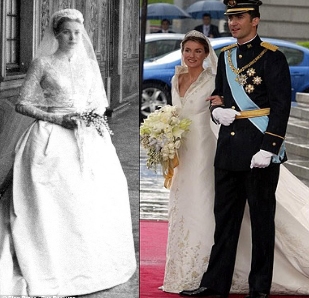 Am putea face, însă, o serie de comparaţii cu rochiile purtate de Grace Kelly, la nunta ei cu Prinţul Rainer of Monaco, desfăşurată în anul 1956, sau cu cea a Letiziei de Asturias care s-a căsătorit pe 22 mai 2004, la Catedrala Nuestra Senora din Madrid, Spania.