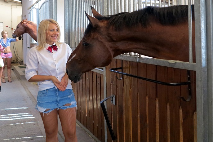 “La herghelie se află găzduiţi 14 cai, pur-sânge, mulţi dintre ei, premiaţi la concursuri internaţionale. Am filmat celebrul dans Gangnam Style într-o mare viteză, întrucât nu doream să speriem caii. Erau foarte frumoşi, dar recunosc că mi-a fost un pic teamă de ei. Deşi sunt foarte inteligenţi, sunt totuşi animale şi reacţionează imprevizibil. Unul dintre ei era cât pe ce să mă muşte. Voi începe în curând cursuri de echitaţie şi îmi va piere teama de cai”, a spus Amna.