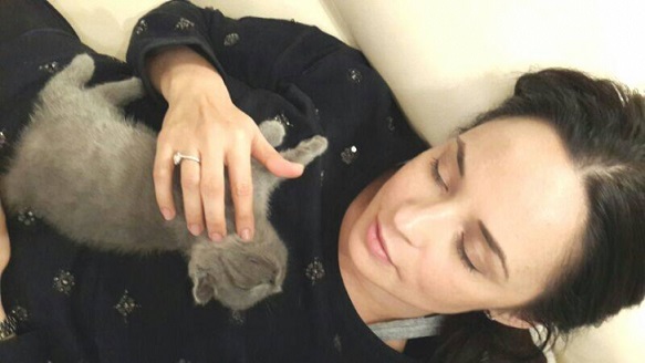 Nu este prima dată când vedeta postează imagini în care apare fără machiaj. Pe 1 aprilie, ea a pus pe Facebook o fotografie în care apărea în pijamale, cu un pisoi în brațe, cel mai nou membru al familiei ei.