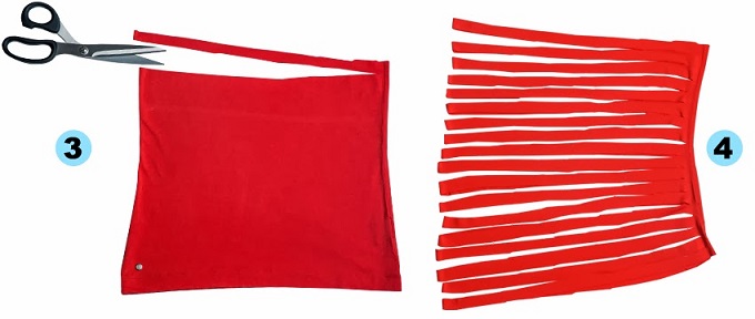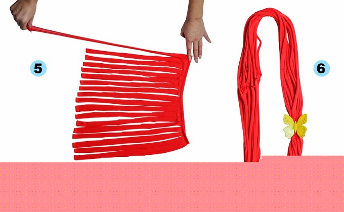 “Taiati tricoul sub decolteu. Apoi, pe orizontal, franjuratil. Alungiti apoi, cu mana, fiecare fasie pana obtineti lungimea dorita. Se formeaza astfel lanturi inchise pe care le puteti purta ca esarfa in jurul gatului. Puteti accesoriza esarfa, spre exemplu, cu o insigna, un martisor, o floare sau un fluture. Intotdeauna lucrurile realizate manual au un farmec aparte si pot reprezenta si cadoul ideal pentru cei dragi”, declara fashion bloggerul.