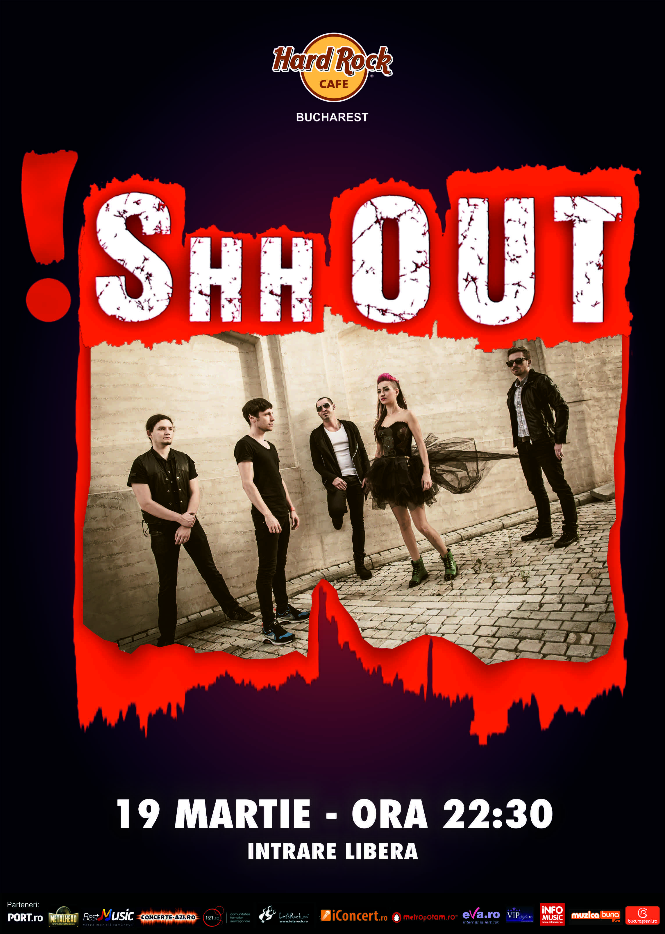Înfiinţată la începutul lui 2015, trupa reuneşte muzicieni experimentaţi, ce reuşesc să transmită publicului starea, energia şi plăcerea cu care interpretează fiecare melodie, de la evergreen-uri la piesele de top din ultimii ani. !Shhout înseamnă: Alina Toma - voce (Vocea României), Cristian Mihai – voce, Hanes Radu- tobe, Andrei Bălaşa – chitară & backing vocals, Daniel Radu – clape & backing vocals, Radu Anghel – bass.