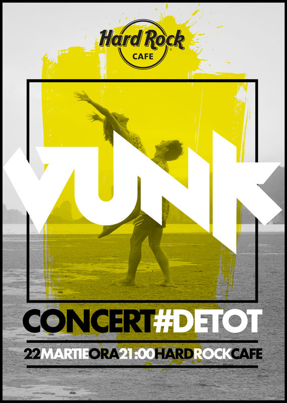 Pe 22 martie VUNK face show la Hard Rock Cafe! Cornel Ilie şi colegii săi te invită cânţi, să dansezi şi să te bucuri de melodiile care îţi plac mult #de tot! Vino să cânţi "La orice ora", "Prima noapte" , "Inconjorul lumii" şi multe alte piese celebre din inconfundabilul univers muzical al trupei VUNK.