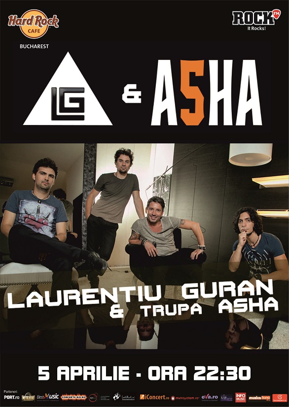 Pe 5 aprilie, de la ora 22:30, trupa ASHA te asteapta la Hard Rock Cafe cu o colectie de hituri cum rar ai mai vazut! Laurentiu Guran (voce), Dan Ionescu (chitara), Ionut Deliu (bass), Andrei Ilie (tobe), Dan Stetco (clape) si Luiza Popescu (backing vocal) vin pe scena din HRC dupa numeroasele succese inregistrate in tara si in strainatate, pentru a canta live cover-uri dupa unele dintre cele mai frumoase piese ale tuturor timpurilor. Si o fac asa de bine, incat legendarele trupe Mr. Big si Scorpions i-au invitat sa cante in deschiderea concertelor pe care acestia le-au sustinut in Bucuresti si in Craiova. Dar nu trebuie sa ne crezi pe cuvant. Vino si convinge-te singur!