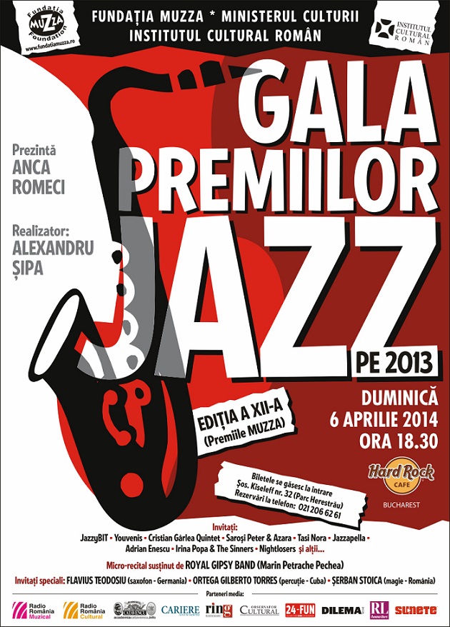 Fundaţia MUZZA, în colaborare cu Ministerul Culturii şi Institutul Cultural Român, organizează, şi anul acesta, la Hard Rock Cafe, Gala Premiilor de Jazz 2013 - Premiile MUZZA. Ajunsă la ediţia a XII-a, Gala este cel mai important eveniment anual pentru acest gen muzical şi îşi propune, ca de fiecare dată, să evidenţieze şi să premieze cele mai reuşite performanţe din acest domeniu pentru anul precedent. Evenimentul va avea loc duminică, 6 aprilie, de la ora 19:00.