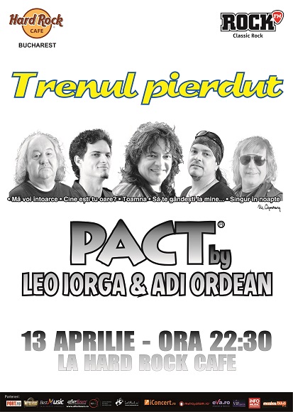 Trupa PACT reuneste mari nume ale muzicii pop-rock: Leo Iorga (vocal), Adrian Ordean (chitara, voce), Dan Stesco (claviaturi), Cristi Iorga (tobe, voce), Marian Mihailescu (bass, voce) si Alexandru Ardelean (chitara), care vor urca pe scena din Hard Rock Cafe pe 13 aprilie, intr-un concert de senzatie. Se vor canta coveruri dupa piese internationale, dar si hiturile compuse de Adi Ordean si cantate de Leo Iorga intre anii 1988 si 1996, care va vor aminti de cele mai frumoase momente ale adolescentei: ‘Trenul pierdut’, 'Sa te gandesti la mine', 'Singur in noapte', 'Cine este tu, oare?' sau 'Ma voi intoarce'.