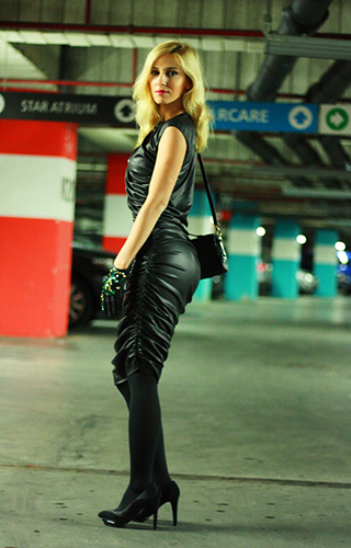 "Ieri seară am fost invitată la un eveniment care avea dress code 'James Bond Style'. Am ales o rochie neagră de piele, pantofii cu toc înalt şi, fireşte, mănuşi. Pentru o astfel de temă, se cerea şi o sedinţă foto specială pentru blog. Locaţia perfectă şi la îndemână a fost chiar parcarea Mall Băneasa. Imi plac pozele, au o atmosferă filmică. Nu-i aşa?"