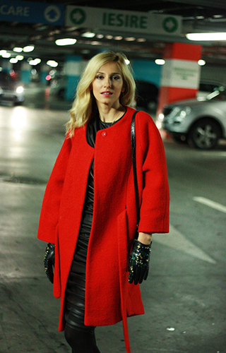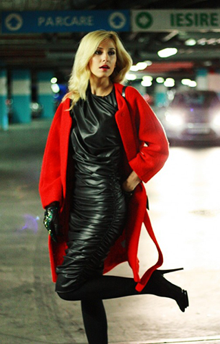 Dana a optat pentru o rochie neagră din piele, pantofi cu toc înalt, un palton roşu şi mănuşi. Rogoz este foarte încântată de fotografii şi spune că au o atmosferă aparte.