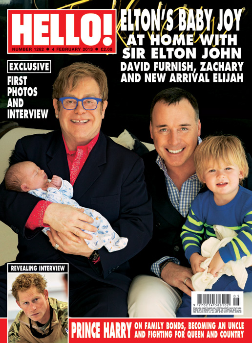 Devenit recent tată pentru a doua oară, starul a pozat pentru revista Hello!, ținându-și mândru în brațe bebelușul, alături de iubitul său, David Furnish, și de fiul lor mai mare, Zachary.