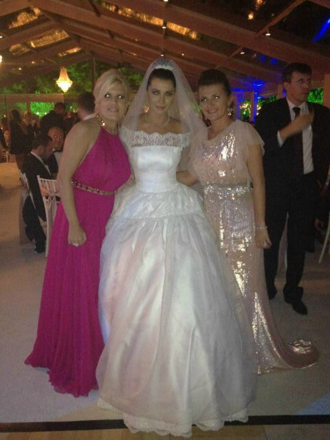 Cu o rochie fuchsia, lungă, prinsă pe după gât, Elena Udrea a făcut furori la nunta mezinei preşedintelui.