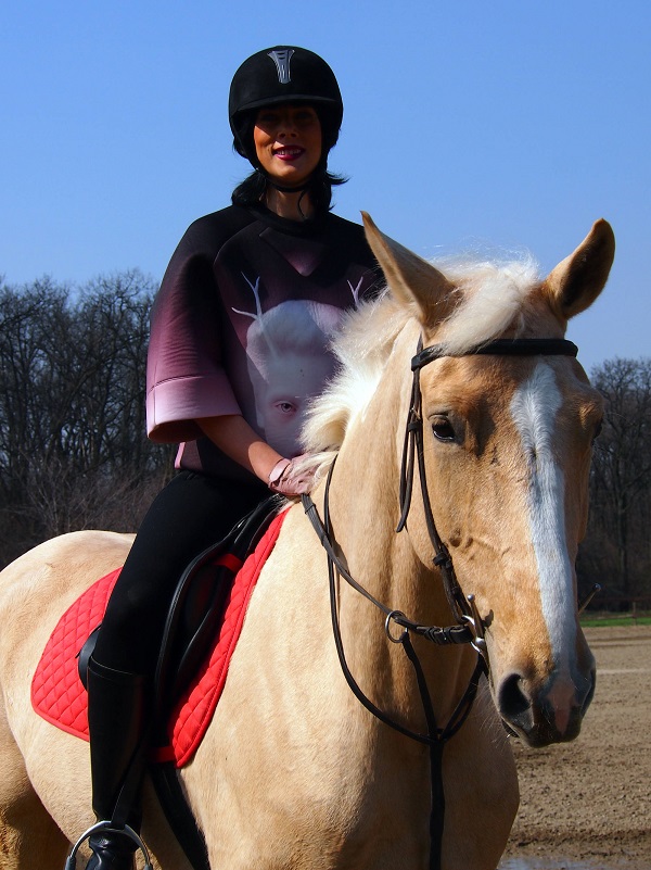 „Este una din cele mai nobile forme de sport, un mod de a-ti petrece timpul liber in care simti pe deplin libertatea care ti-o ofera. Te relaxeaza foarte mult si, pe langa faptul ca te reechilibreaza, oferindu-ti mai multa incredere in tine, iti tonifiaza foarte bine musculatura. In mod special cea a picioarelor, a spatelui, a bratelor sau a abdomenului. Timp de o ora poti arde pana la 700 de calorii. Si asta intr-un mod cat de poate de frumos, in directa comuniune cu natura. Echitatia m-a invatat sa am mai multa incredere in mine. Cand voi avea un copil, il voi indrepta spre acest domeniu, daca voi simti ca isi doreste”