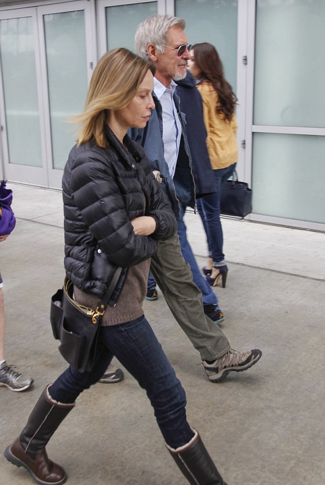 Actrița a mers duminică la un meci de baschet, în Los Angeles, împreună cu soțul, Harrison Ford, și fiul lor. Ea a preferat un look natural, dovedind că trecerea timpului n-a lăsat urme majore pe chipul său.
