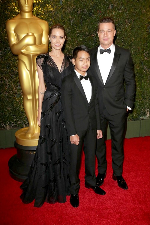 La ceremonia de acordare a premiilor Oscar onorifice, Governors Awards, actriţa a venit însoţită de partenerul de viaţă, Brad Pitt, dar şi Maddox, fiul adoptat de cuplul Pitt - Jolie din Cambodgia. Angelina a primit "Jean Hersholt Humanitarian Award" în fața unei audiențe formate din numeroase staruri, printre care Tom Hanks, Jake Gyllenhaal, Diane Keaton, Emma Thompson, Harrison Ford, Amy Adams, Matthew McConaughey sau George Lucas. Acest premiu a mai fost acordat în trecut unor personalităţi precum Oprah Winfrey, Elizabeth Taylor, Quincy Jones, Jerry Lewis şi Paul Newman.