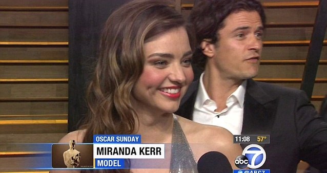 Fără să țină cont că modelul australian tocmai dădea un interviu pentru o echipă de televiziune, actorul s-a dus direct spre ea și a întrerupt-o, întrebând-o candid ce mai face. Copleșit de ținuta ei, Orlando n-a rezistat și a i-a făcut repede un compliment: "Bună. Arăți grozav", i-a zis el și a sărutat-o galant pe obraz. Apoi a întrebat-o dacă se descurcă. "Da", i-a răspuns repede Miranda, înainte ca Orlando să-ți continue drumul, zâmbitor.