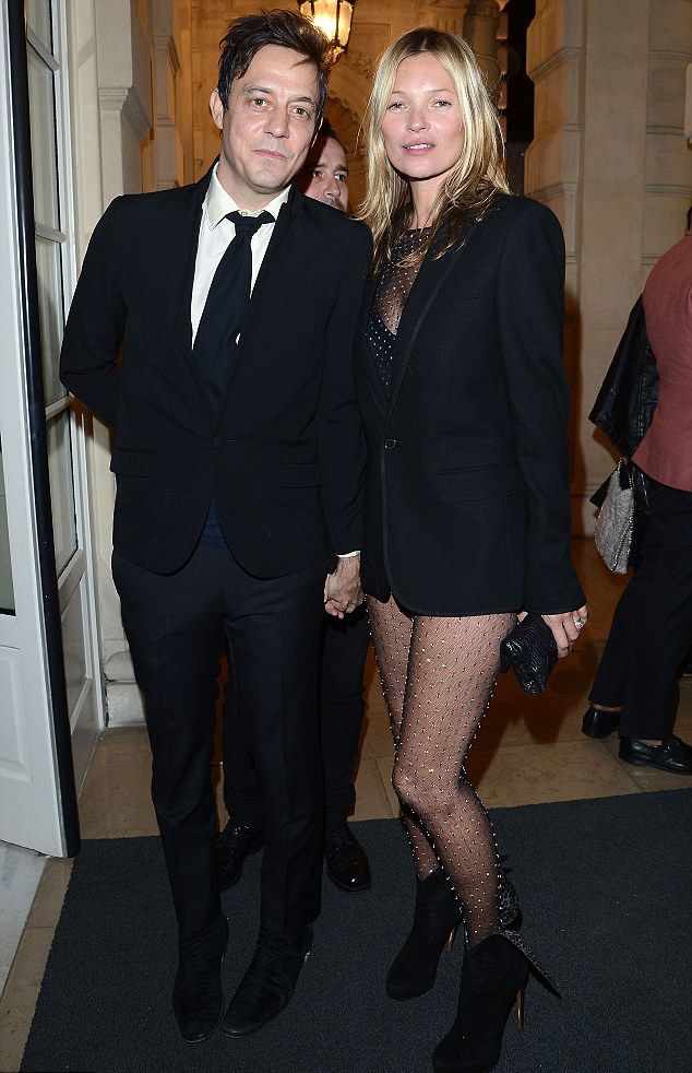 Potrivit ziarului britanic Daily Mail, Kate Moss a fost însoţită de prietenul ei, rockerul Jamie Hince, la cocktailul organizat de hotelul parizian Shangri-La.