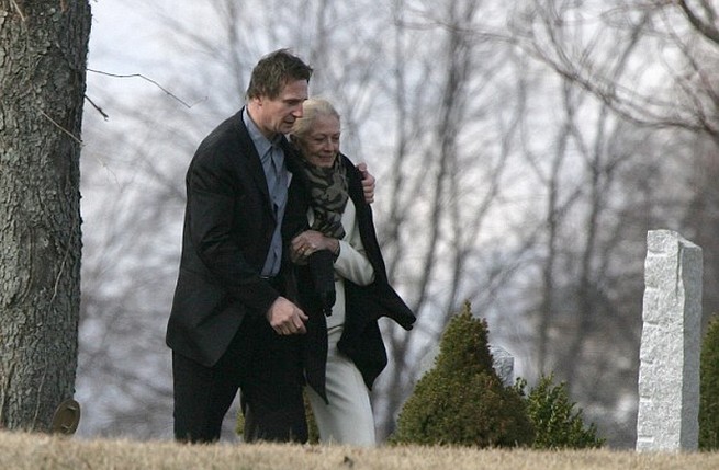 Liam Neeson alături de mama soţiei sale, Vanessa Regrave, la mormântul actriţei