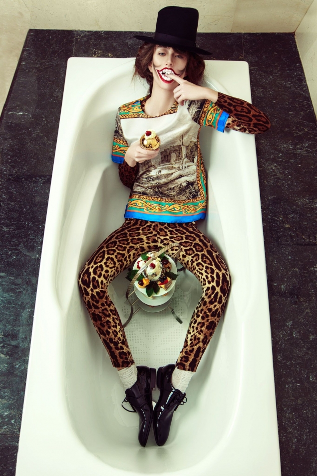 Hera sau The Joker? Toate vorbesc despre dualitate. Feminin versus masculin, inocenţa versus frivolitate, calm versus isterie. Iulia Albu te îndeamnă “să asculţi” acest pictorial, notează wowbiz.ro.