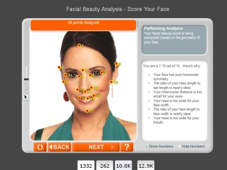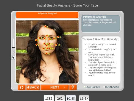 Fără a intenţiona cumva să se dezgroape din nou securea războiului, astăzi am decis să le supunem pe cele două dive testului Anaface.com. Este vorba despre soft-ul care, măsurând raportul dintre trăsăturile feţei, îţi spune, pe o scară de la 1 la 10, cât eşti de frumoasă.