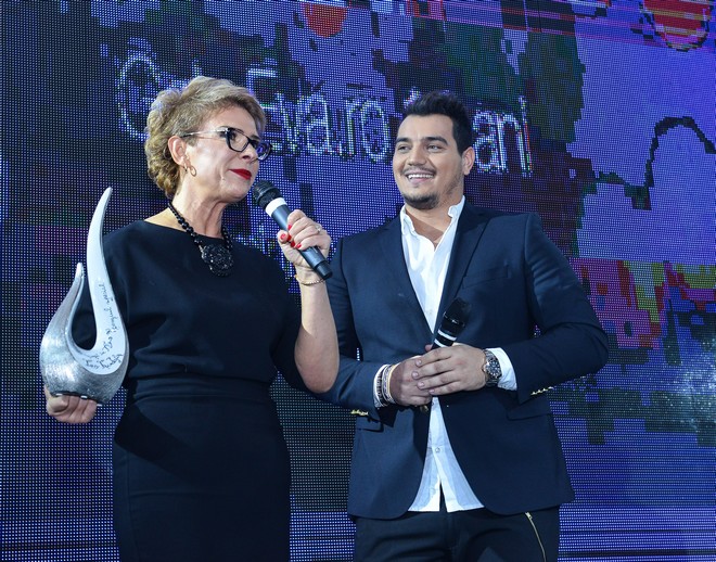 Teo e sorbită din priviri de prezentatorul evenimentului Gala eva.ro