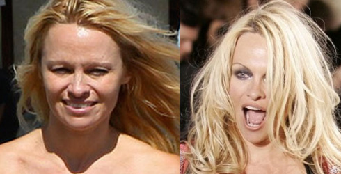 Pamela Anderson sau mai bine spus Pamela Anderson... bomba sexi. La mult timp dupa "Baywatch", dupa o casnicie si cateva relatii amoroase ratate, dupa escapade... scandaloase in care blonda nu a facut decat sa se dea intr-un spectacol ieftin, udat cu mult alcool, acum descoperim o Pamela Anderson trecuta, ridata, incercanata, cu un par pe care nici cel mai bun hairstylist nu-l poate repara. Asa arata diva atunci cand nu-si da intalnire cu machiorul personal. Deosebirea dintre cele doua fotografii este evidenta, iar realitatea este cruda, in cazul ei.