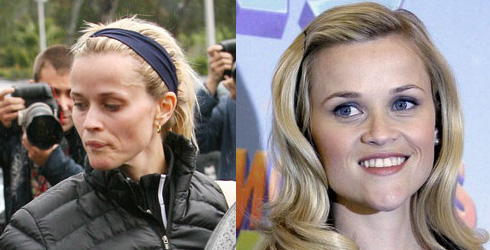 Reese Witherspoon, asa cum se stie, este imaginea unei firme de cosmetice. Tinand cont de acest lucru, actrita ar trebui sa fie atenta la imaginea ei si sa nu iasa in public nemachiata... mai ales in fata fotografilor. Diferentele sunt lesne de observat.