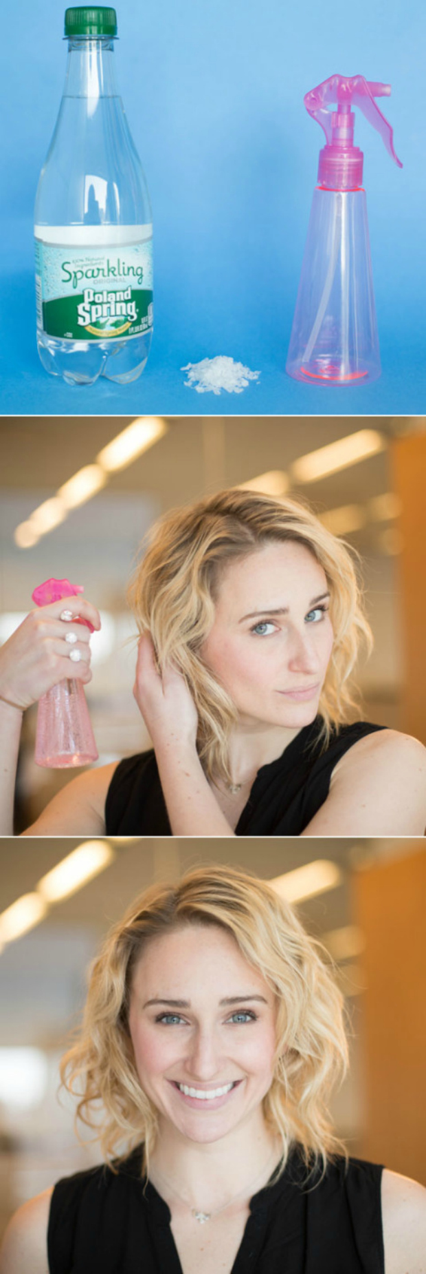 Este cunoscut faptul că părul uşor răvăşit are acel ceva foare sexy. Iar ca să obţii bucle lejere, aparent neglijente, exact ca cele pe care le ai după o zi petrecută pe malul mării, apa cu sare este secretul. Sarea oferă o textură interesantă părului şi te ajută să-i pui în valoare structura naturală. Pune o linguriţă de sare de mare într-un recipient cu pulverizator plin cu apă minerală, agită bine până ce sarea este dizolvată, apoi pulverizează pe păr. Trece-ţi degetele prin păr şi lasă-l să se usuce. La final vei avea şuviţe uşor răvăşite şi foarte sexy.