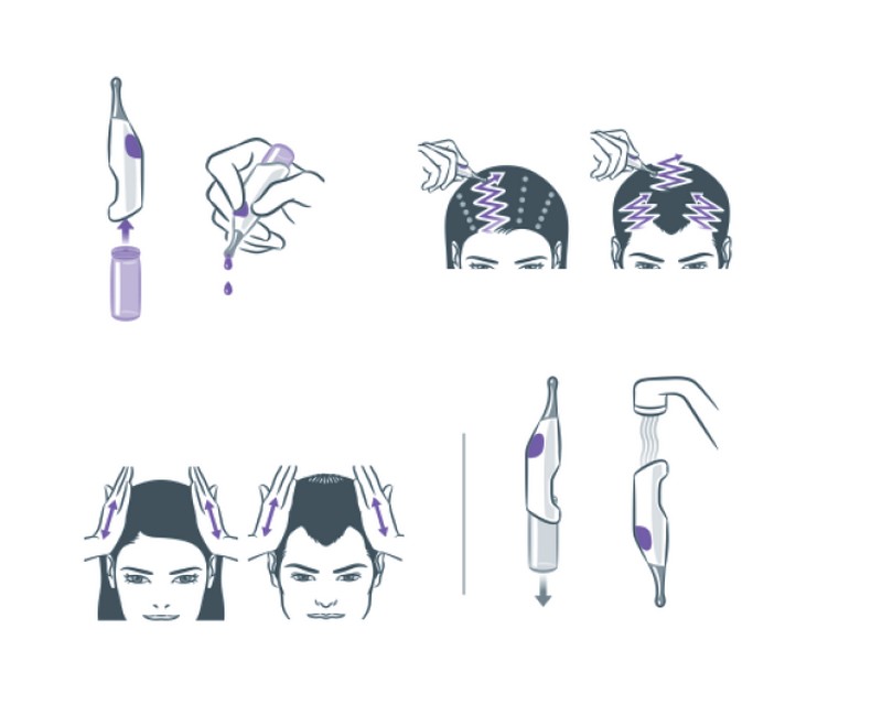 O cutie conţine 28 de fiole şi un aplicator pe care trebuie să-l clăteşti după fiecare utilizare. Se introduce fiola în aplicator, se aplică întregul conţinut efectuând mişcări în zig-zag şi insistând pe zonele cele mai afectate. Vârful ergonomic al aplicatorului masează scalpul într-un mod plăcut, stimulând microcirculaţia.