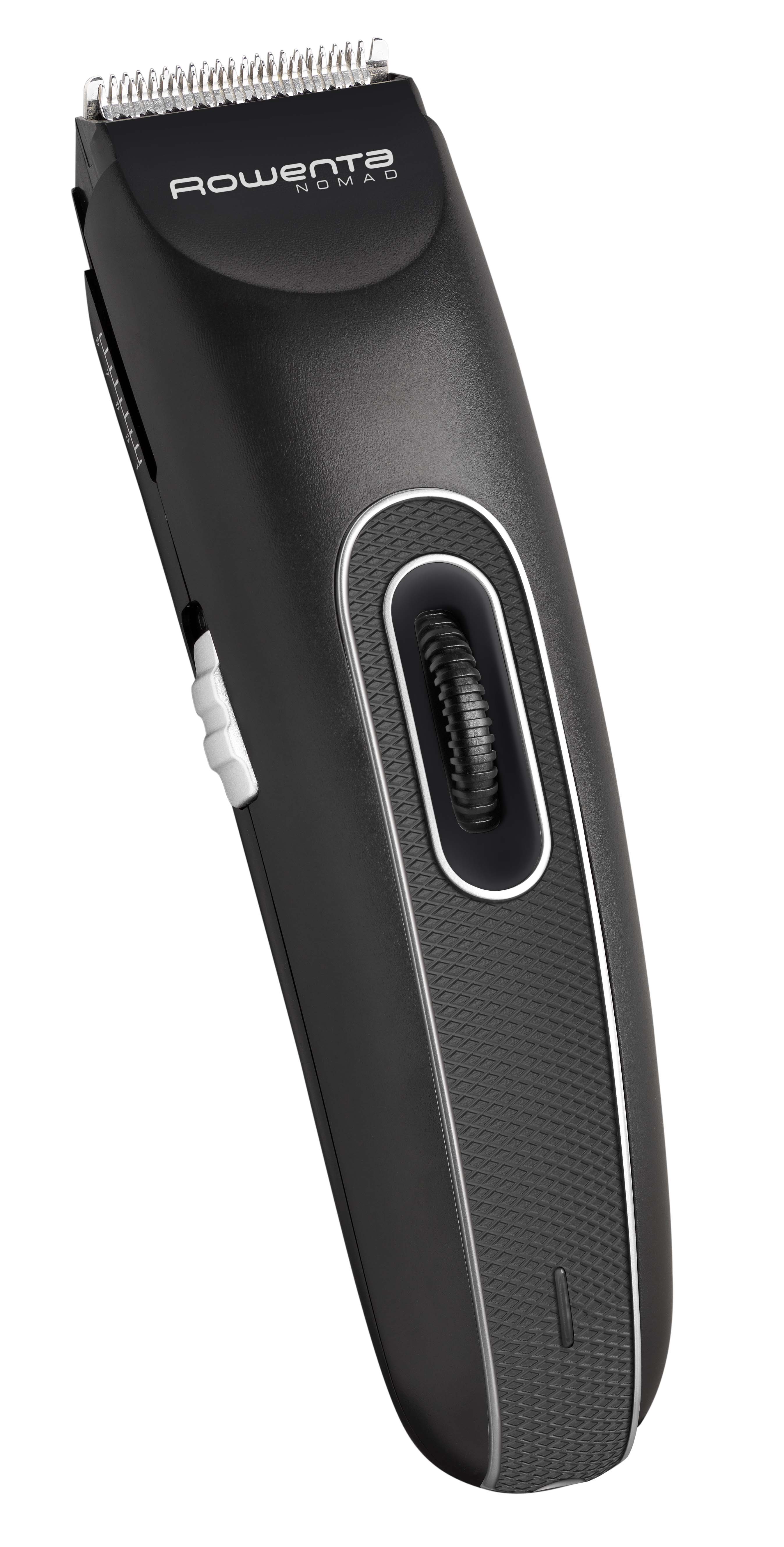 Valentinului tau, ofera-i noul aparat de tuns NOMAD de la Rowenta, pentru un look barbatesc, modern si curat, fara grija iritatiilor. Practic, ergonomic si usor de utilizat, NOMAD poate fi conectat la priza sau poate functiona pe acumulatori (autonomie 40 de minute). In plus, este prevazut cu suport de incarcare, pentru maximum de confort. Dotat cu lame rezistente din oţel inoxidabil si doi piepteni ajustabili ce ii asigura 19 dimensiuni, va fi pe placul oricarui barbat care doreste sa arate bine in cel mai scurt timp, cu minimul de efort.