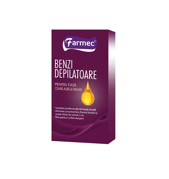 Benzile depilatoare Farmec pentru față cu ceară albă și argan au fost create special pentru îndepărtarea firelor de păr din zonele sensibile ale feței. Noile produse nu conțin parfum și alergeni.