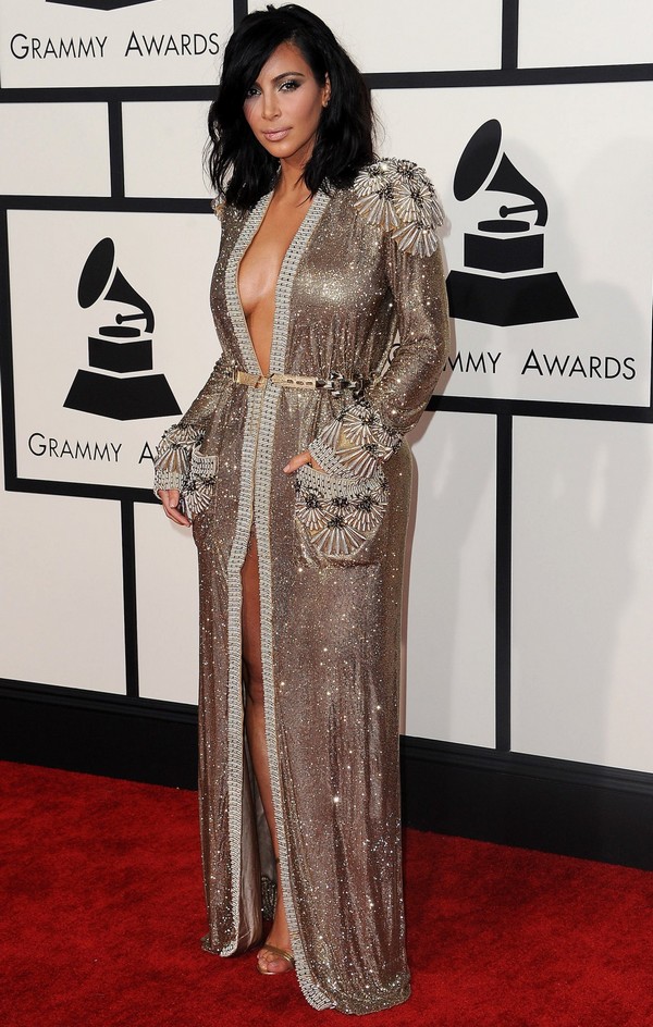 5. Kim Kardashian s-a îmbrăcat în capotul lui Liberace, de aceea mânecile îi sunt atât de lungi; știm că are grijă să fie super bronzată tot timpul, dar a exagerat! E mult prea închisă culoarea autobronzantului. Părul și makeup-ul sunt frumoase ca de obicei.