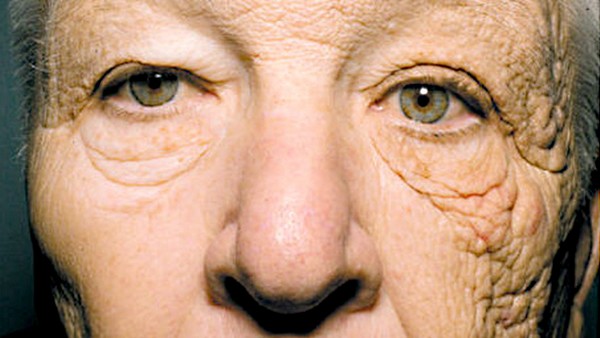 Într-un număr al publicaţiei medicale The New England Journal of Medicine a fost prezentat un caz de dermatohelioză unilaterală, ceea ce înseamnă că numai o parte din chipul lui a fost afectat de boala care i-a îmbătrânit foarte tare doar partea stângă a feţei, care a fost expusă constant la soare timp de 28 ani, petrecuţi ca şofer de tir.