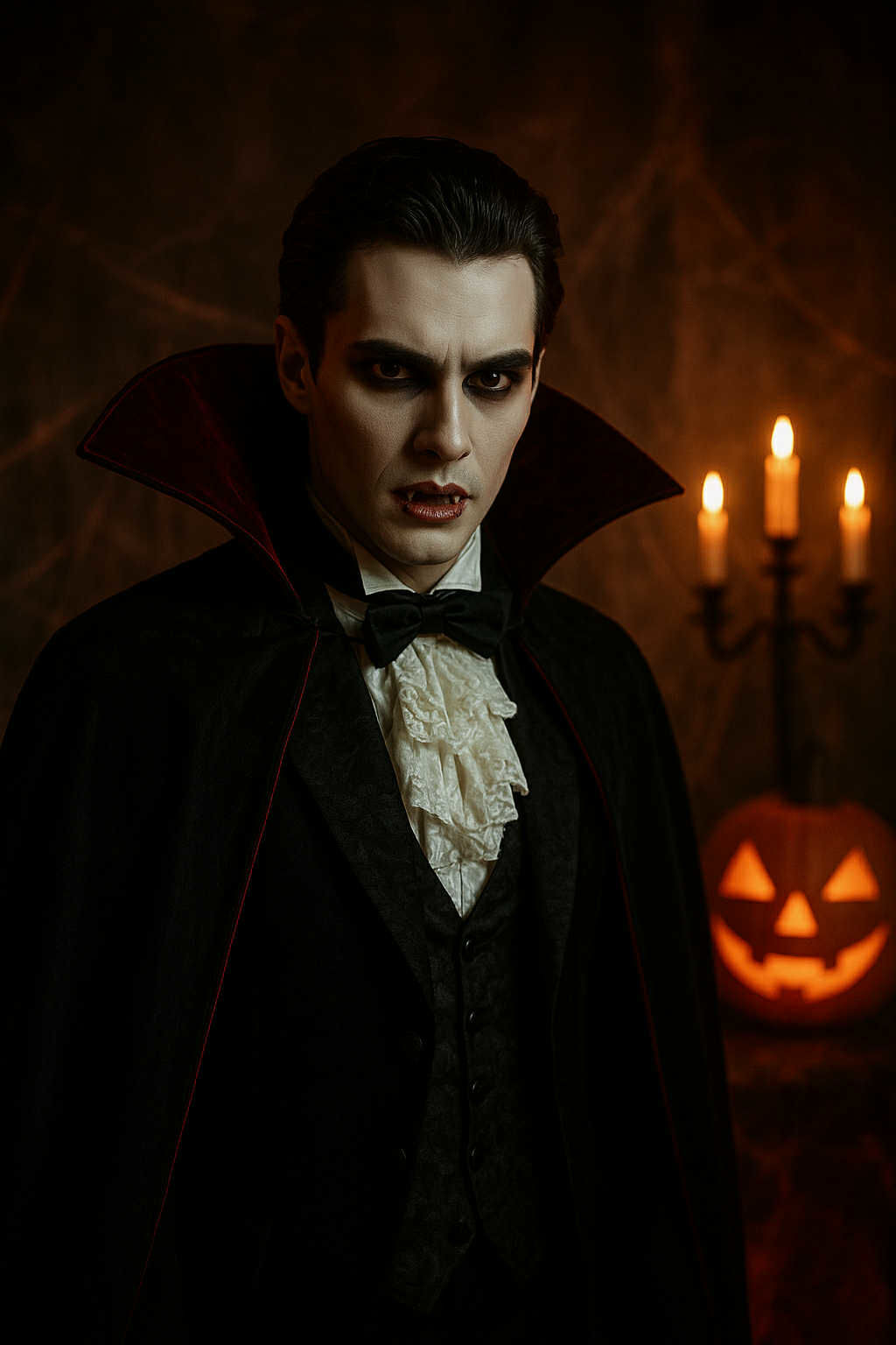 - Vampirul elegant: frac, colți subtili și un aer aristocratic.